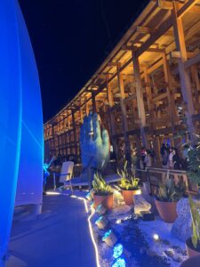 On se demande maintenant comment se positionnera en 2030 l’Arabie Saoudite, où se déroulera la prochaine exposition universelle, dont les projets faramineux (Neom, The Line, Oxagon3…), robotisés et hyperconnectés, donnent a priori l’impression d’être peu écologiques. À Osaka, les visiteurs s’interrogeaient déjà sur ce caractère, au vu des forêts qui avaient dû être abattues pour construire la spectaculaire construction de bois de 2,1 km de circonférence, 20 mètres de haut enserrant les pavillons. Un magnifique « Grand Anneau » mais peu écologique sur une île elle-même artificielle et gagnée sur l’océan.